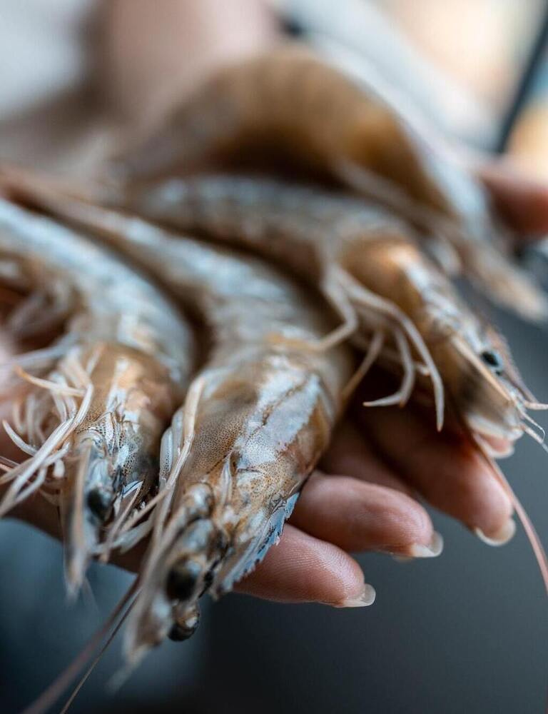 A wide range of farmed fish, shellfish and crustaceans.